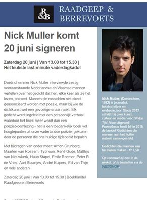 Zaterdag 20 juni | Van 13.00 tot 15.30 | Boekhandel Raadgeep en Berrevoets