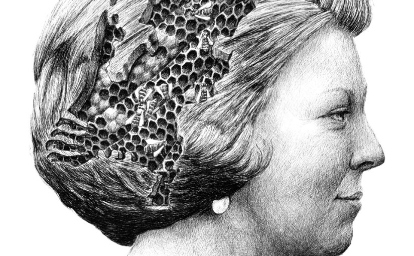 “Ik heb altijd van vervreemding en fantaseren gehouden, dagdromen. Als kind had ik allemaal theorieën over hoe de wereld in elkaar zat en dit wist ik op de academie te herontdekken en in mijn tekenen te verwerken. De werking van dingen is een fascinatie van mij en in veel tekeningen vind je dit terug. Doordat ik bijvoorbeeld apparaten en voorwerpen ‘openwerk’ en dan vrijelijk invul wat er zich binnenin bevindt. Hierdoor krijgteen onderwerp vaak een volledig ander gevoel of betekenis.