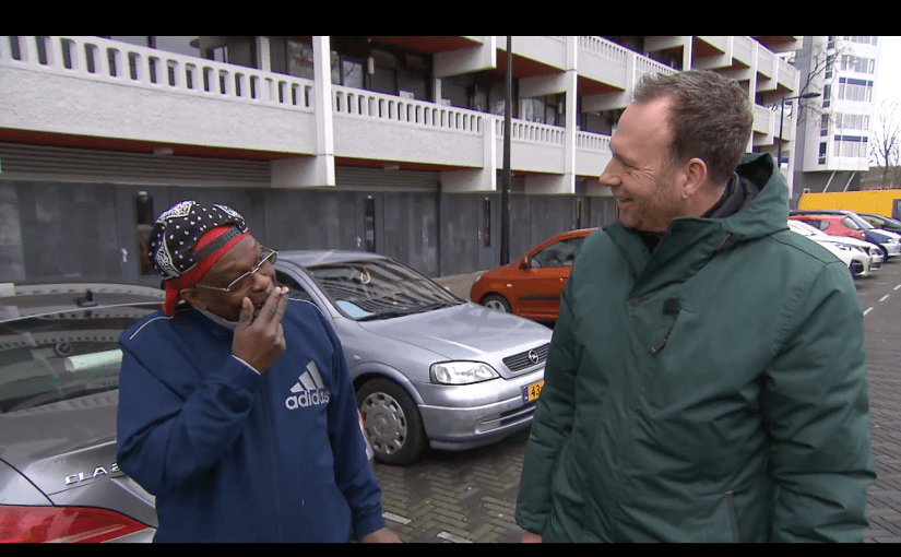 Die instelling past bij iemand die vier seizoenen lang op autopech afreed. De Alarmcentrale: Pech Onderweg is een realityserie waarin Van Gelder met gestrande automobilisten praatte terwijl de monteur van de ANWB Wegenwacht aan de slag ging. De rolverdeling was helder: de monteur repareerde, soms met wat Van Gelder een MacGyver-techniek noemt — improviseren met wat voorhanden is — en de presentator peuterde het levensverhaal eruit. Neem die baron in Frankrijk, verarmde adel met een oud autootje dat hij ‘de gele flits’ noemde, terwijl de wegenwacht ter plekke remschijven voor hem fabriceerden in een garagetje langs de weg.